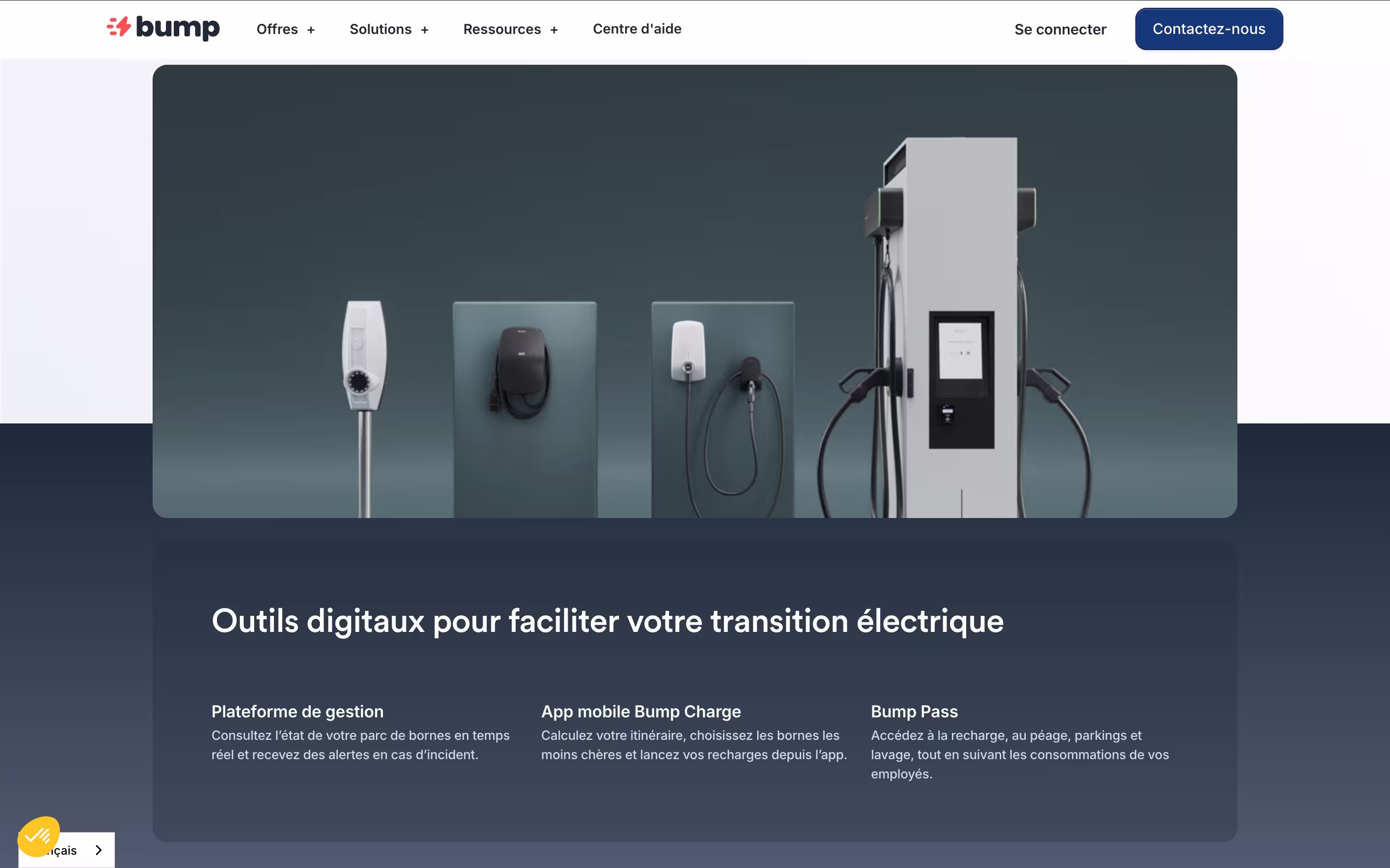 Bump est une entreprise française qui a pour mission de décarboniser le secteur de la mobilité en fournissant des solutions de recharge clé en main pour les véhicules électriques.