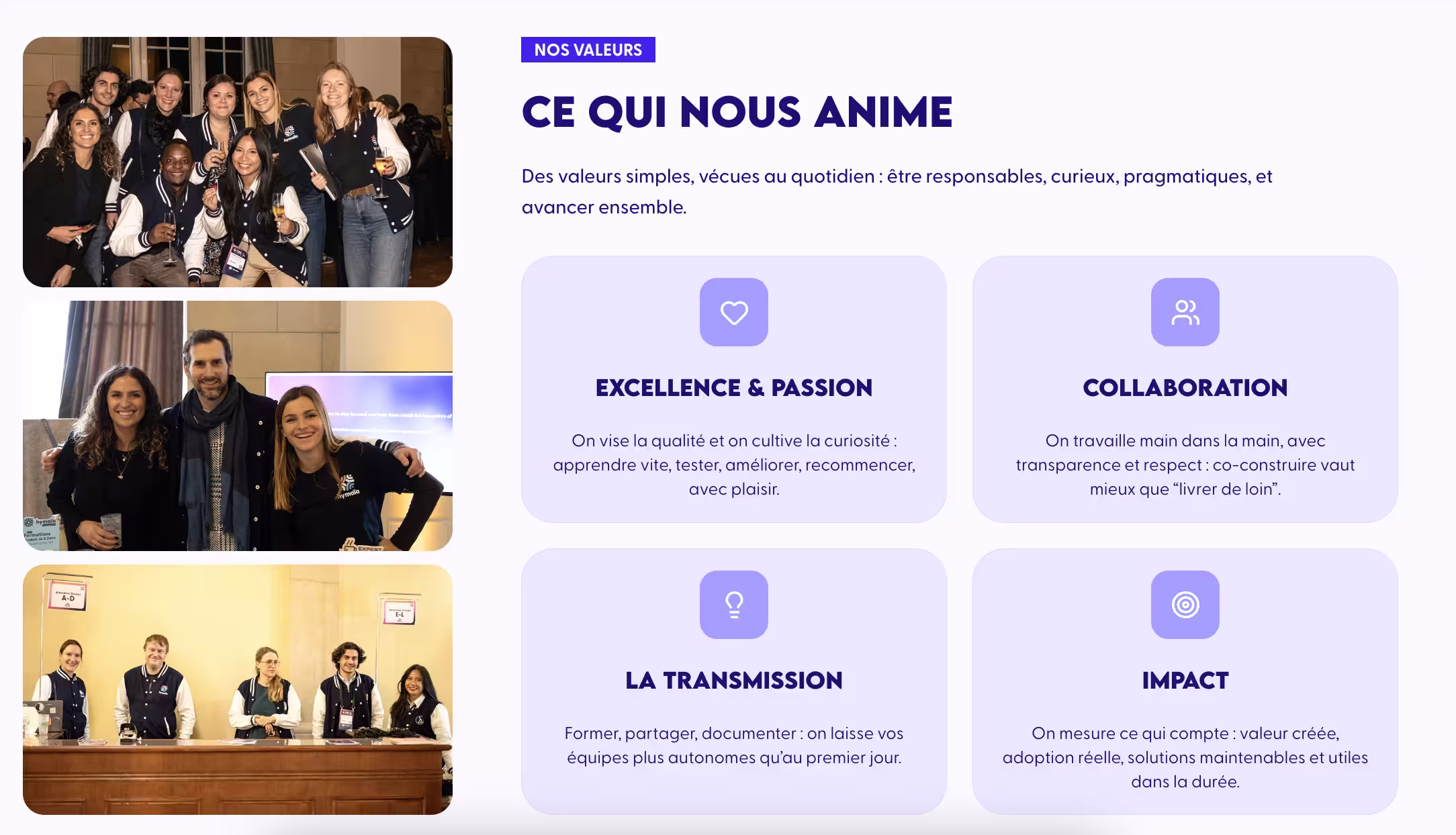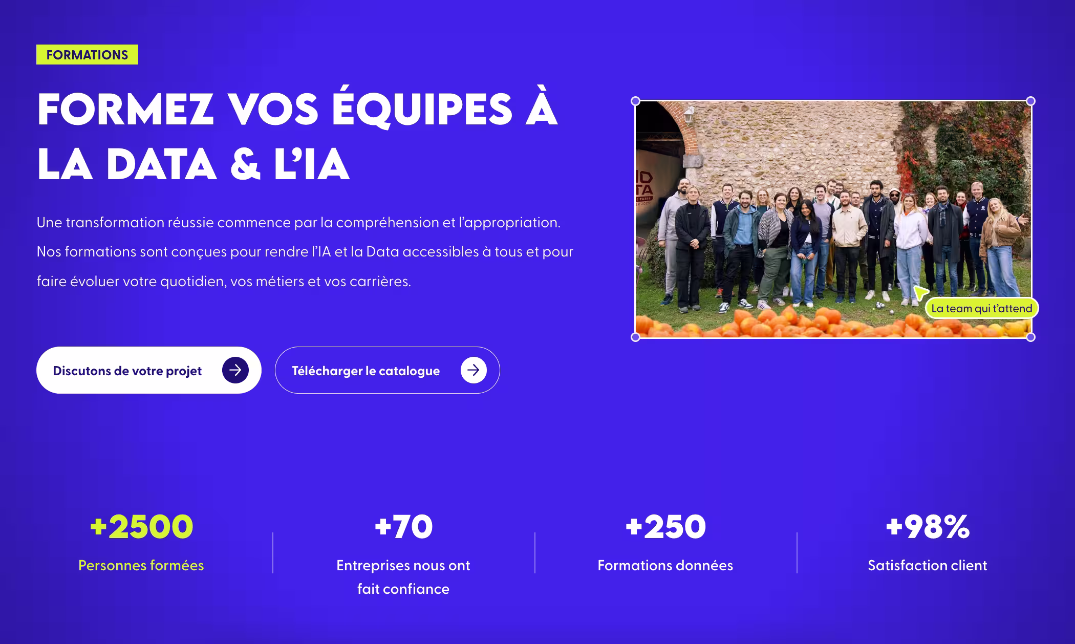 L’entreprise combine expertise technique (data engineering, IA, plateformes data) et approche produit pour concevoir et déployer des cas d’usage concrets, tout en aidant les équipes à monter en compétences.