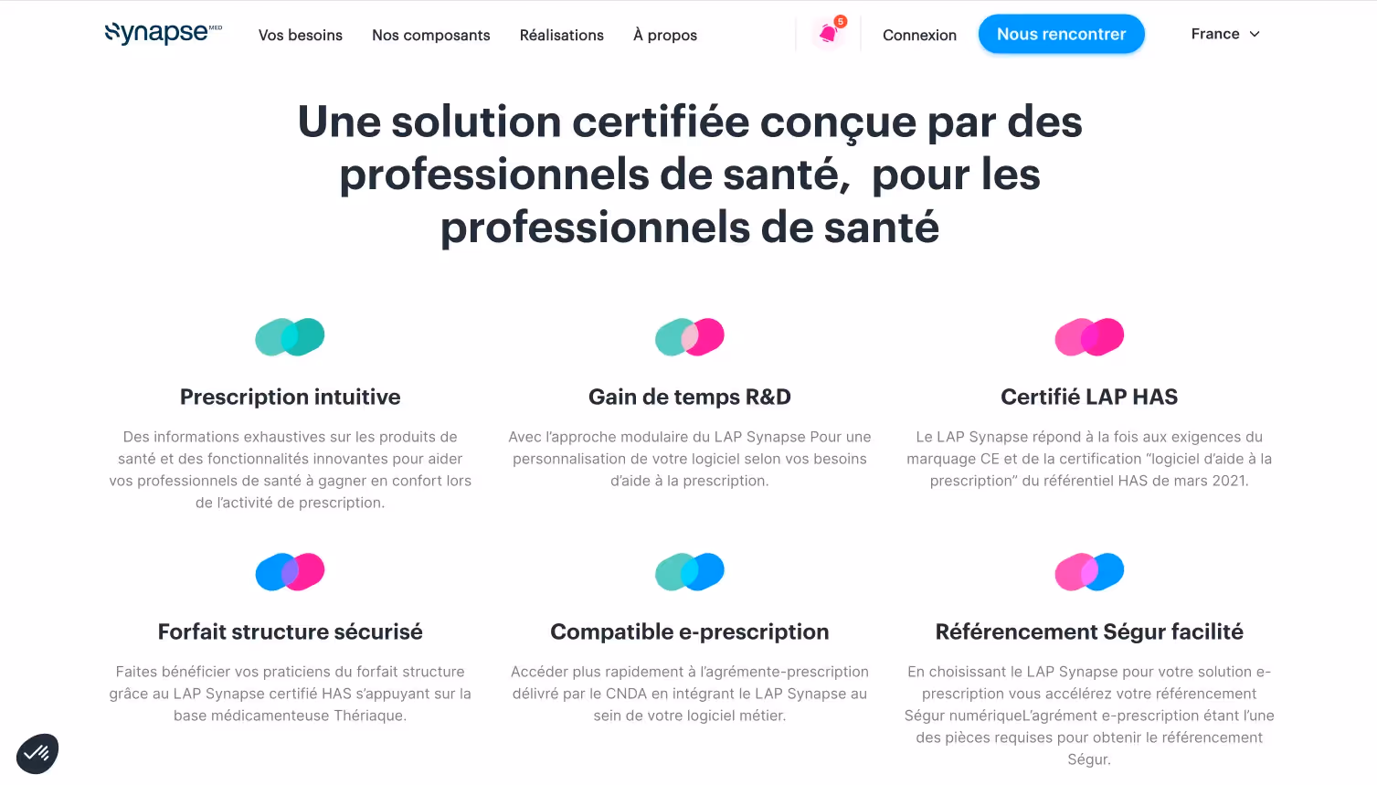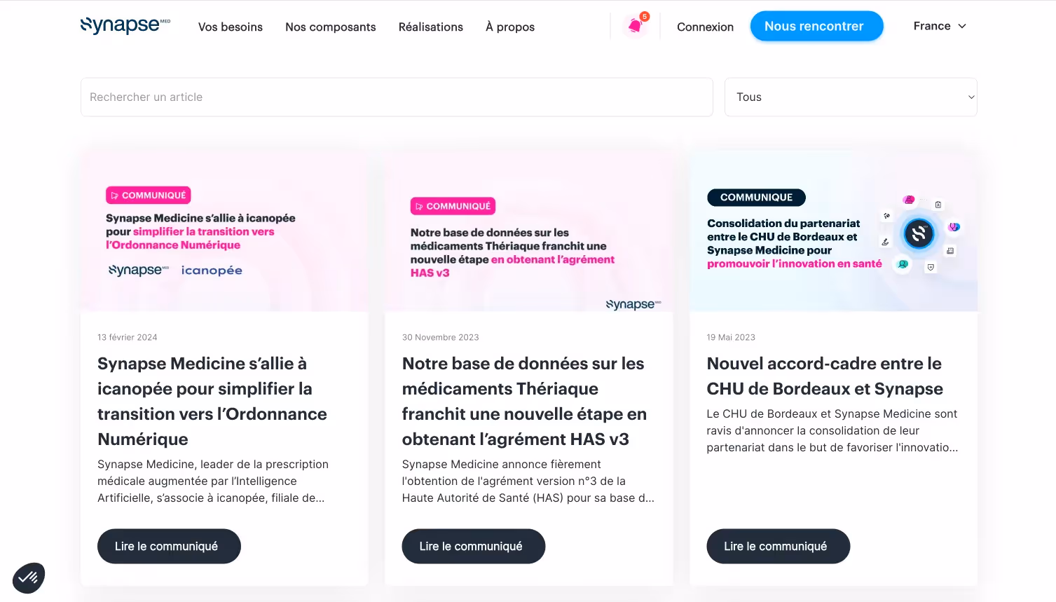 Synapse Medecine, une entreprise spécialisée dans l'intelligence artificielle pour la santé, souhaitait migrer son site Web de NextJS vers Webflow. Ils nous ont contactés pour réaliser cette migration et pour intégrer le site de A à Z sur la base d'un design déjà existant.