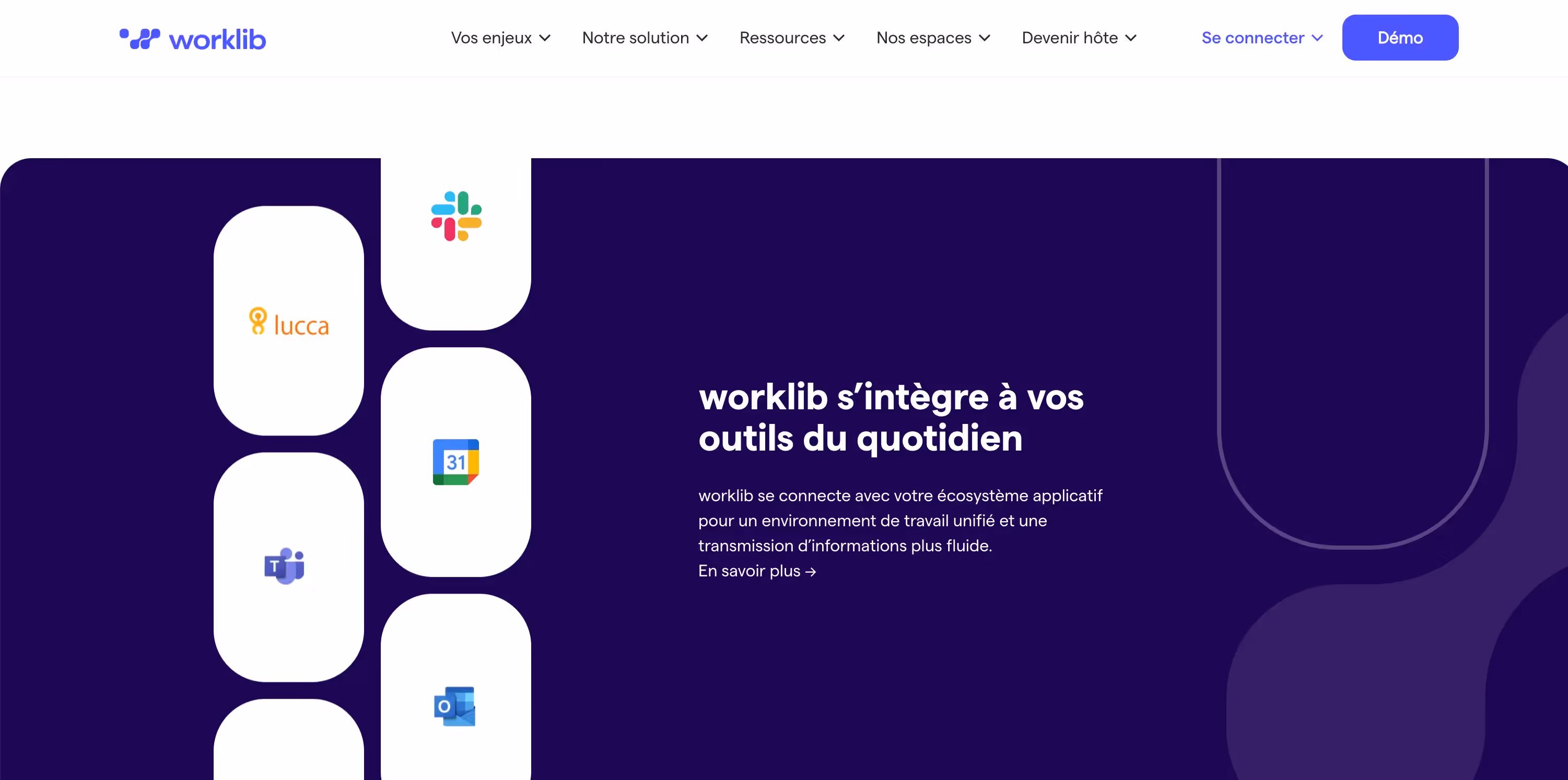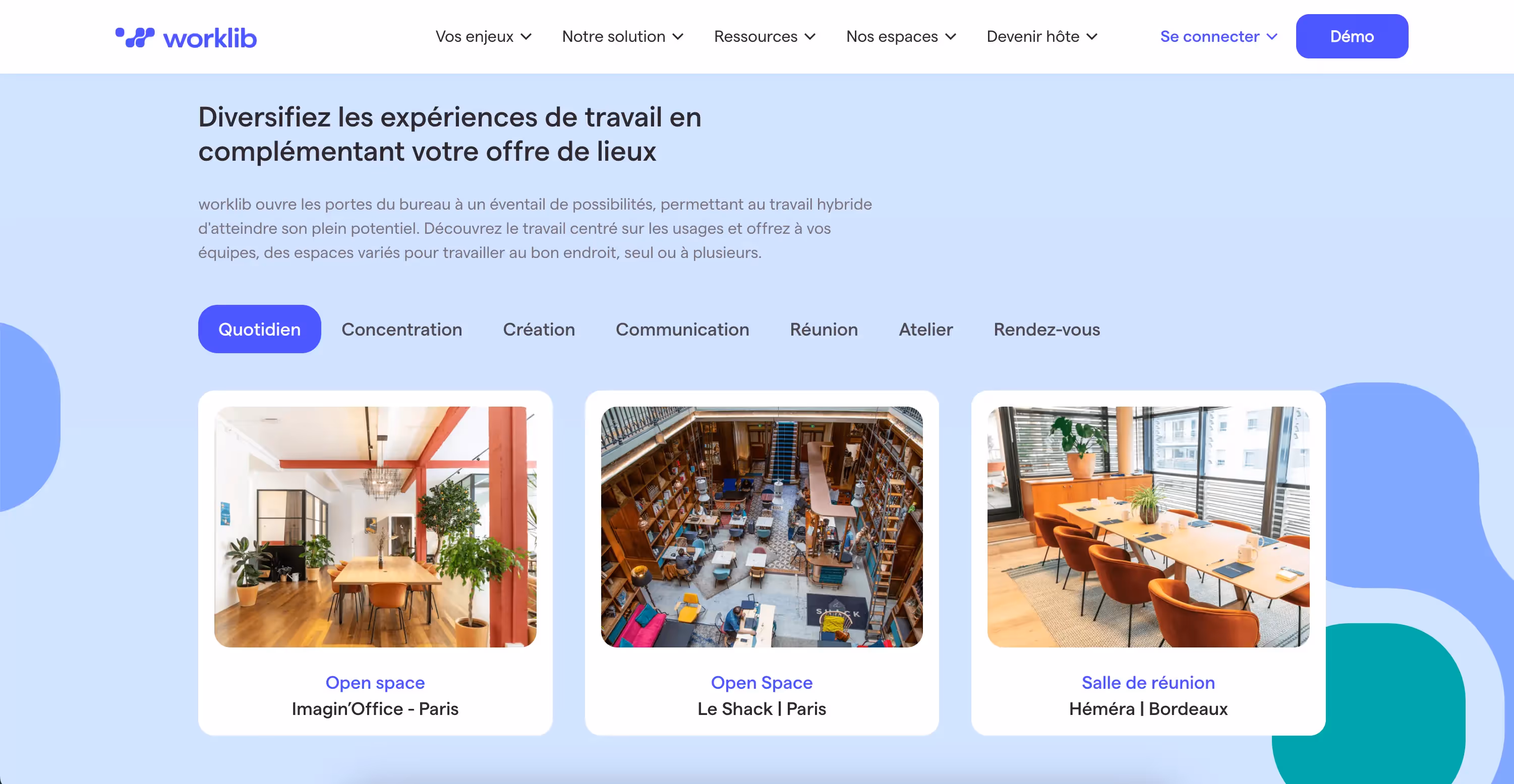 Worklib est une plateforme de travail hybride conçue pour les entreprises. L'objectif de la plateforme est de faciliter la transition vers le travail hybride, en permettant aux entreprises de gérer les espaces de travail, les équipes et les outils de manière centralisée.